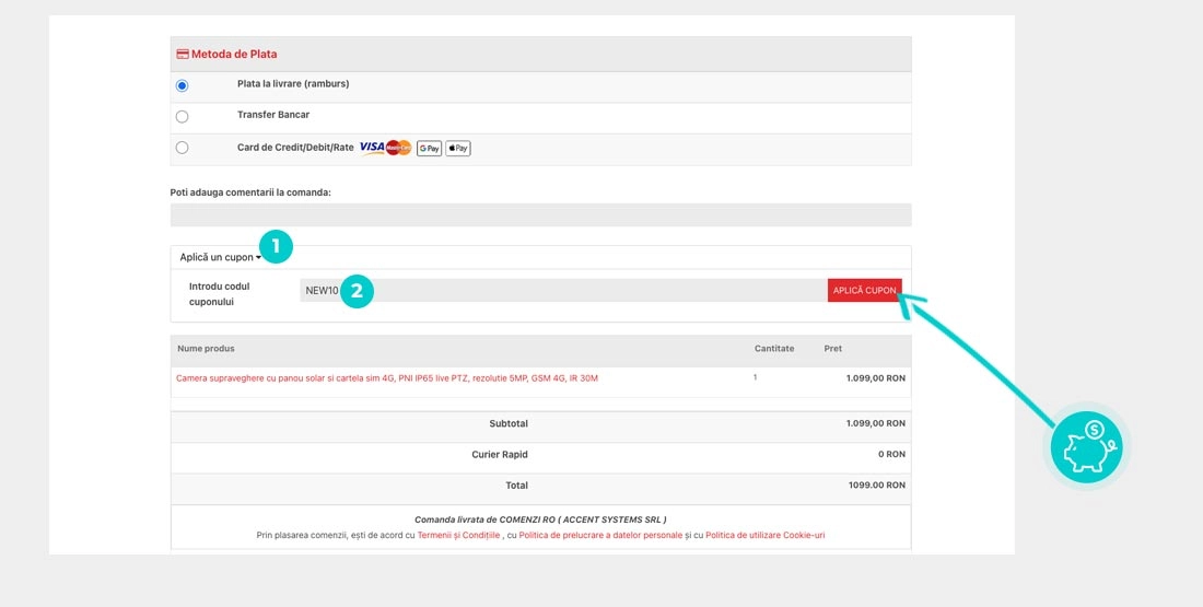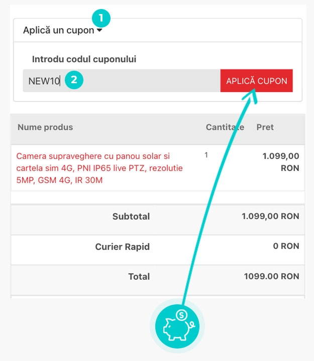 Valoarea reducerii: -5%Reducerea - 10% se aplică la orice comandă în magazinul online Comenzi.ro atunci când introduceți codul de reducere în coșul de cumpărături. Folosiți voucher Comenzi.ro și cumpărați sisteme supraveghere și accesorii diverse mai ieftin.