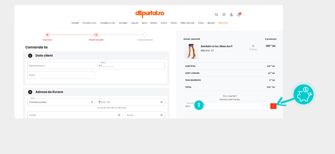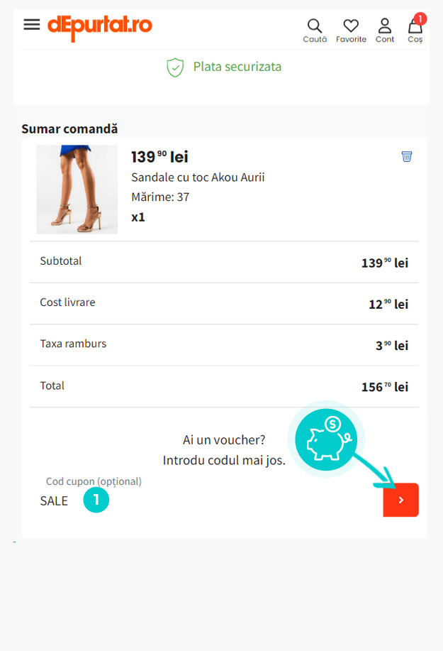 Copiați sau transcrieți codul reducere și faceți click pe butonul portocaliu „Transfer în magazin“, ulterior veți fi redirecționat direct în magazinul online Depurtat.ro.
