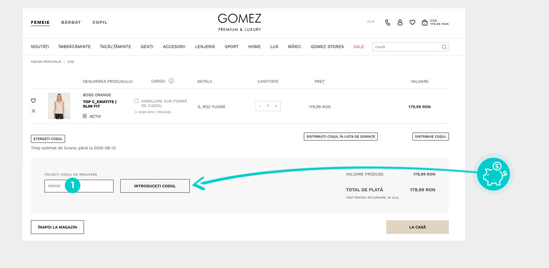 Copiați sau lipiți cod reducere și faceți clic pe butonul „Adaugă în magazin”. Veți fi apoi redirecționat către magazinul online Gomez.