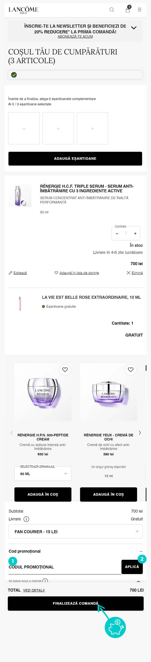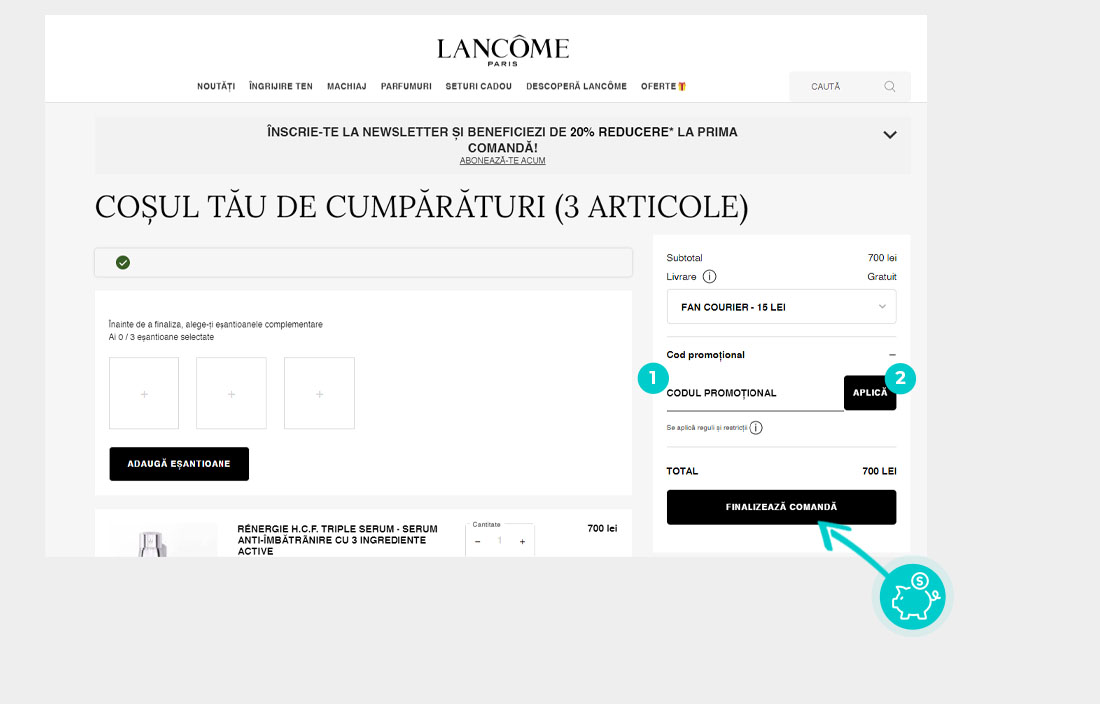 Detalii reducereÎn magazinul online Lancôme veți beneficia de - 20% reducere la prima comandă.