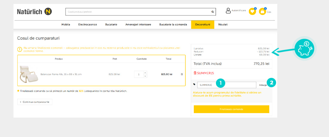 Detalii reducereÎn magazinul online Naturlich veți găsi reduceri de până la - 20% la o selectie de decoratiuni, aflate la promoție.