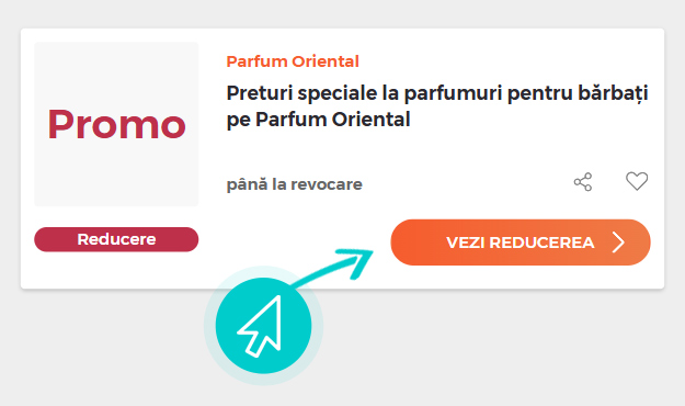 Alegeți o reducere Parfum Oriental concretă de pe pagina noastră faceți click pe „Vezi reducerea“ și veți fi redirecționați în mod automat în magazinul online Parfumoriental.ro direct la oferta promoțională, de unde puteți cumpăra produsul dorit la reducere.