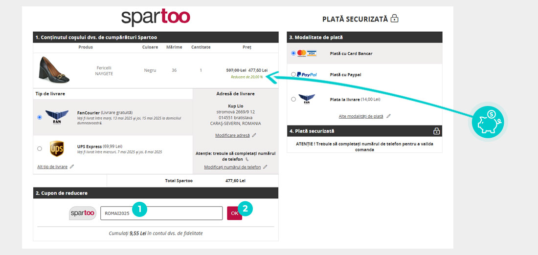Citește mai mult ...Nu știți cu exactitate cum funcționează coduri reducere Spartoo? Vă oferim indicații, cum vă puteți valorifica codurile de reducere simplu și rapid atunci când efectuați cumpărăturile: