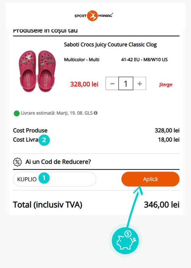 Reducerea de 10% se aplică la toate produsele în magazinul online Sportmaniac atunci când introduceți codul de reducere în coșul de cumpărături. Codul nu se poate cumula cu alte coduri active sau oferte de fidelitate pe SportManiac.ro. Folosiți cod de reducere Sportmaniac și puteți cumpăra încălțăminte și accesorii pentru femei, bărbați și copii mai ieftin.